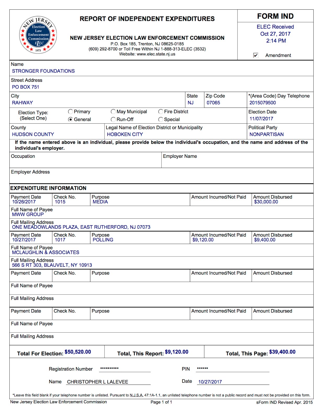 The Stronger Together PAC documentation shows it underwrote a recent campaign poll in Hoboken last month. Who got those results (other than say MSV)?