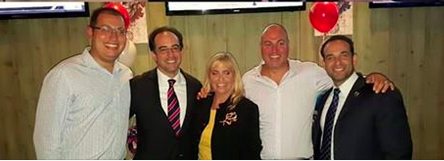 | Opposition of “The Carmelo Ticket?” Peter Biancamano (l) held his kickoff at Lola’s last night. Here he’s pictured previously with the Ma Russo endorsed group of Eduardo Gonazalez, Terry Castellano, Michael Russo and Carmelo Garcia. |