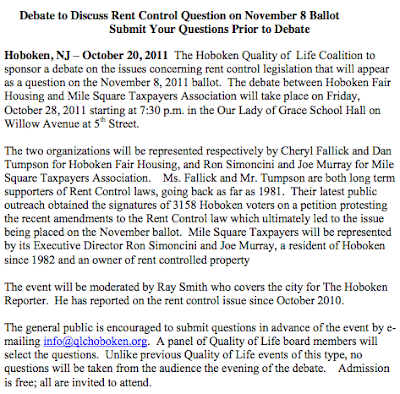 News Rent Control forum set for October 28th at OLG 10/22/201101/22/2021 by SmartyJones Post navigation State of NJ issues required “Certificate of Need” paving way for sale of HUMC to Holdco next weekBeth Mason’s propaganda machine takes one more try at sabotage on saving Hoboken’s hospital