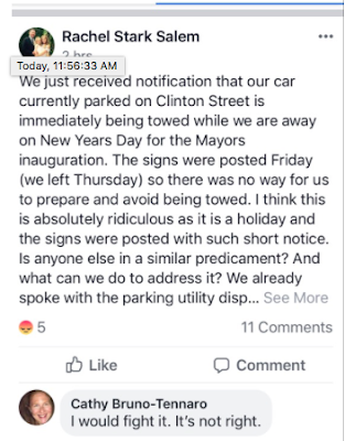 The Bhalla inauguration ran into a glitch not of its own making. It’s the blasted parking notifications or the timely lack thereof. One parent out of town as many through the holidays received the bad news of their soon to be towed vehicle clearing out the area surrounding the high school. She wrote her tale of woe on Facebook:
