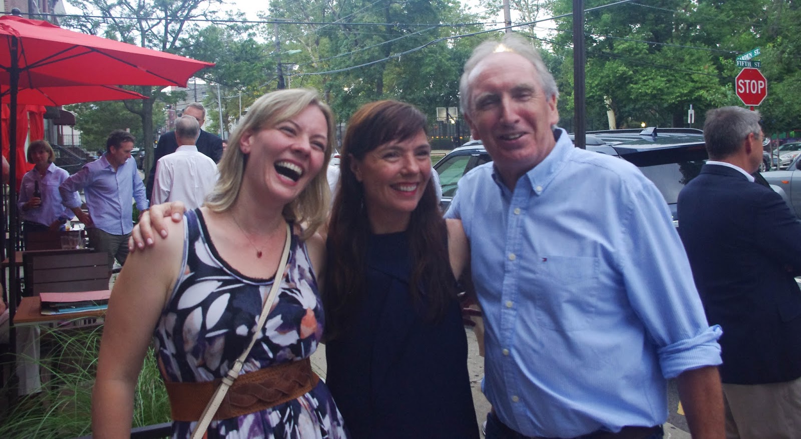 | Hoboken’s former HHA Chair Dana Wefer, Jen Giattino and Hoboken’s no. 1 George Best fan and Moran’s owner, Lenny |