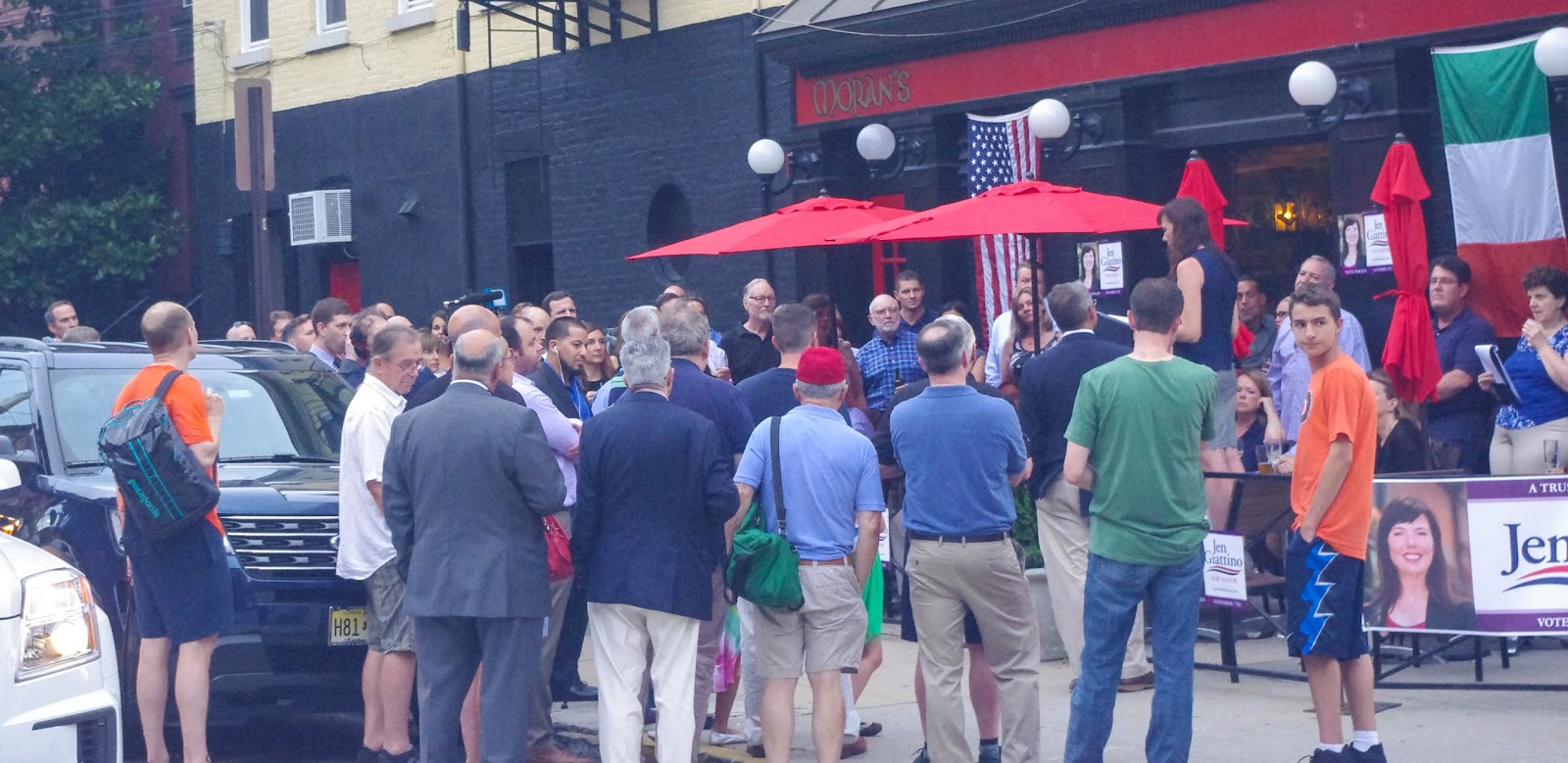 | The crowd outside Moran’s to hear City Council President Jen Giattino |
