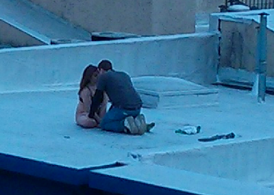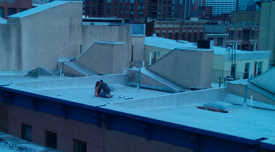 | Two figures are clearly visible on a roof Saturday afternoon during Hoboken Lepercon. |