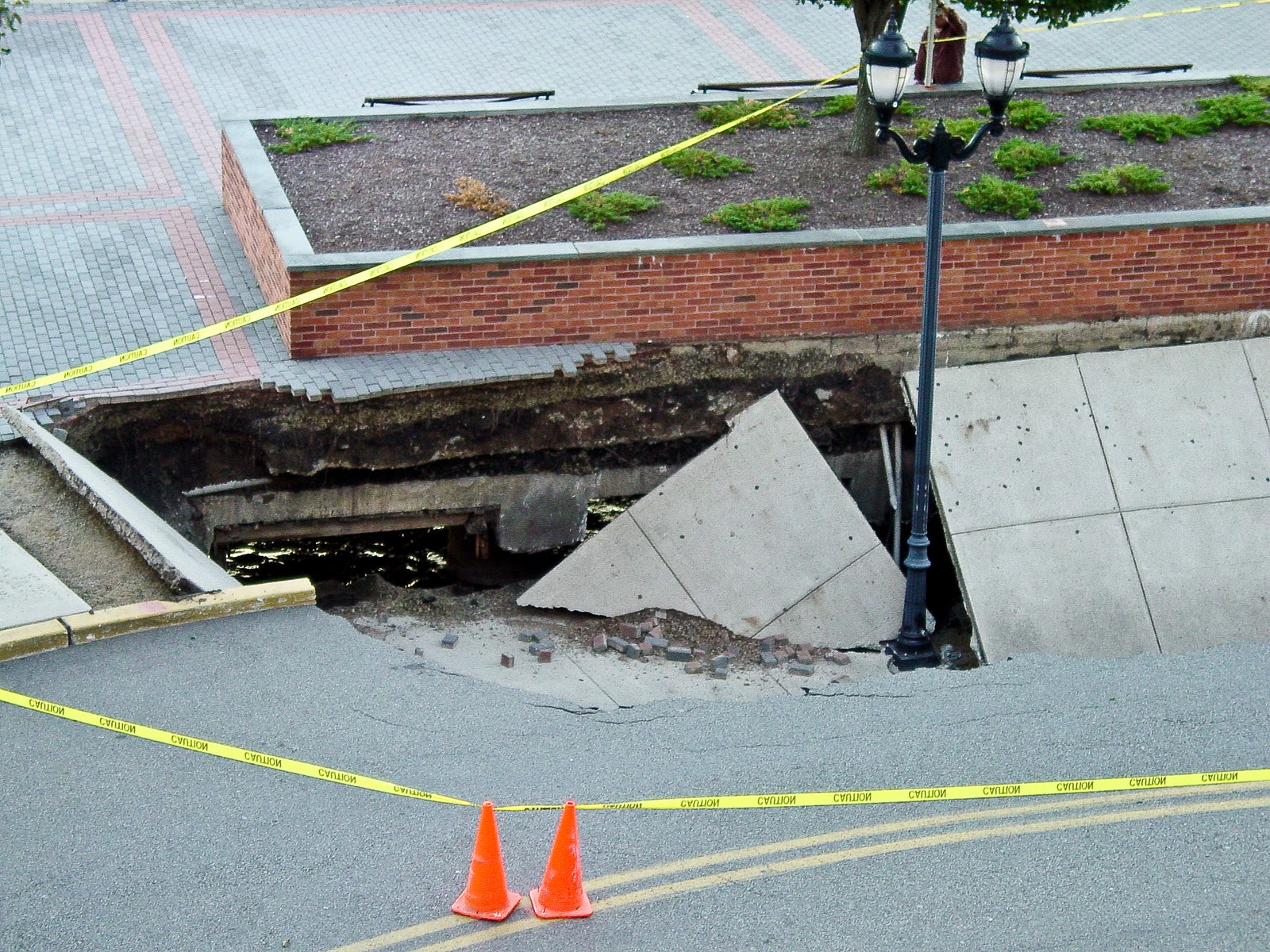| The hole in the ground on upper Sinatra Drive collapse. More trouble is expected. |