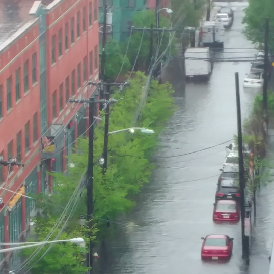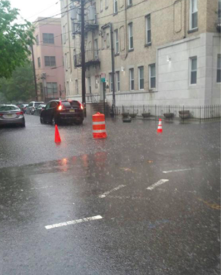 | Flooding in west Hoboken at Ninth and Jackson St. |