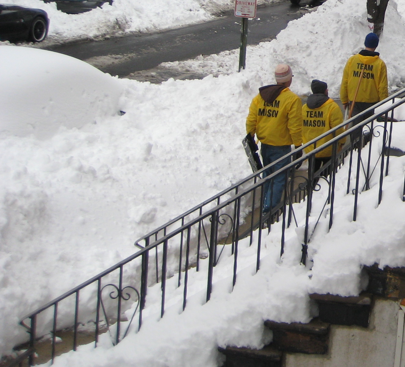 Team Mason, a group of three pictured here in yellow windbreakers are out shoveling it for votes today. A reader submitted this photo with the backstory “Alex from Tenneessee,” an uncle to one of the kids is the collector of the fee for their labor. Alex then pays the young lads who shovel for residents at no charge – at least that’s the understanding the kids have on remuneration.