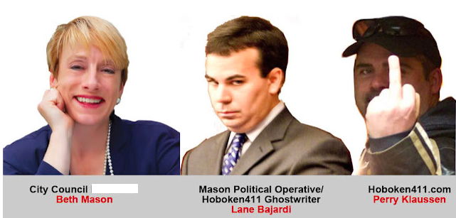 Beth Mason’s hive: Hoboken411 and Lane “I’m not a political operative” Bajardi on Hoboken’s sleaziest dirtbag of a website is shown for wretched hit jobs detailed on Grafix Avenger against former Hoboken Parking and Transportation Director Ian Sacs. |