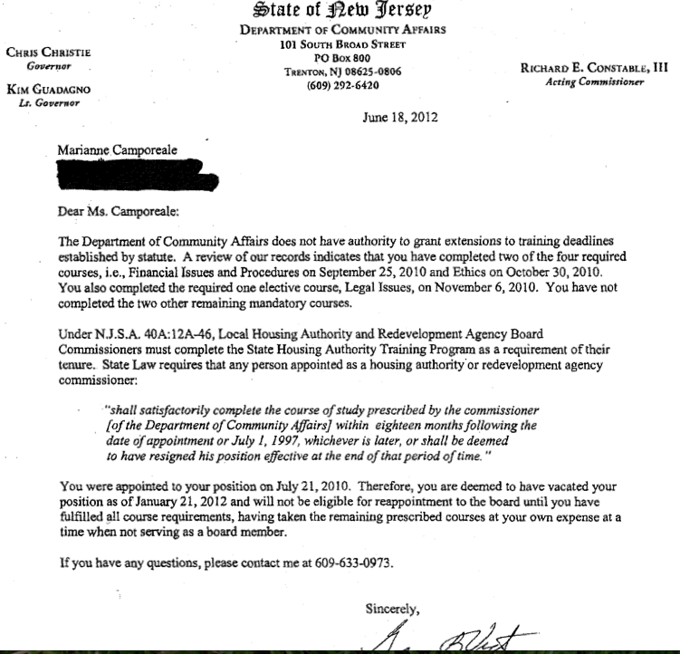 News State of NJ: It’s official – HHA’s Camporeale is “out!” 06/20/201201/22/2021 by SmartyJones MILE SQUARE VIEW BREAKING EXCLUSIVE STATE TO HHA MARIANNE CAMPOREALE: YOU’RE OUT! Talking Ed Note : Well Tim Occhipinti has egg all over his face and the Hudson Reporter needs to repair the damage for calling MSV’s original story “rumors.” Just say’in. Post navigation Tim Occhipinti returns to exploiting the HHA wellTim Occhipinti bitterly continues lying on HHA seat