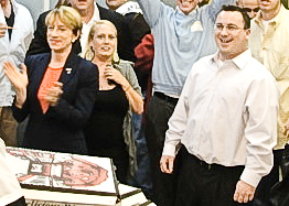 | James Barracato aka Finboy seen here with Beth Mason at Tim Occhipinti’s campaign office in 2010. |