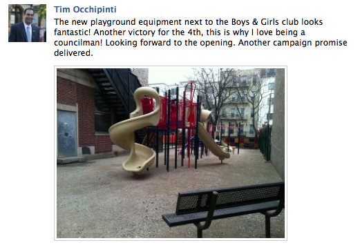What he planned to do with them is unknown but he didn’t get far before he was stopped. Now with the City’s announcement of implementation of several park’s improvements, everyone has braced themselves awaiting when Tim Occhipinti would seize the moment and claim the credit.