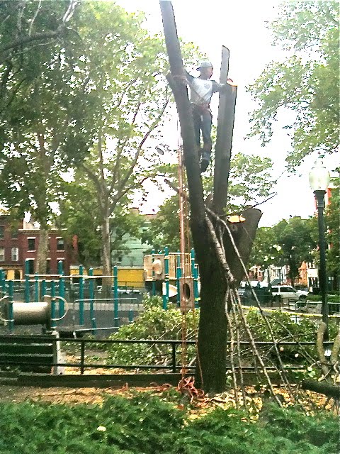 Update: 12:05 MSV was contacted by a source familiar with the work in the park and told this second tree had some issues and it’s not coming down but being extensively pruned in order to attempt to save it. Confirmation is being sought to verify that is in fact the case.