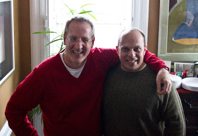 | Some of the crowd during the during the brunch that ran well into the evening. Hey’s that’s the Jolly Green Giant Kurt Gardiner (l) and Councilman Dave Mello . |