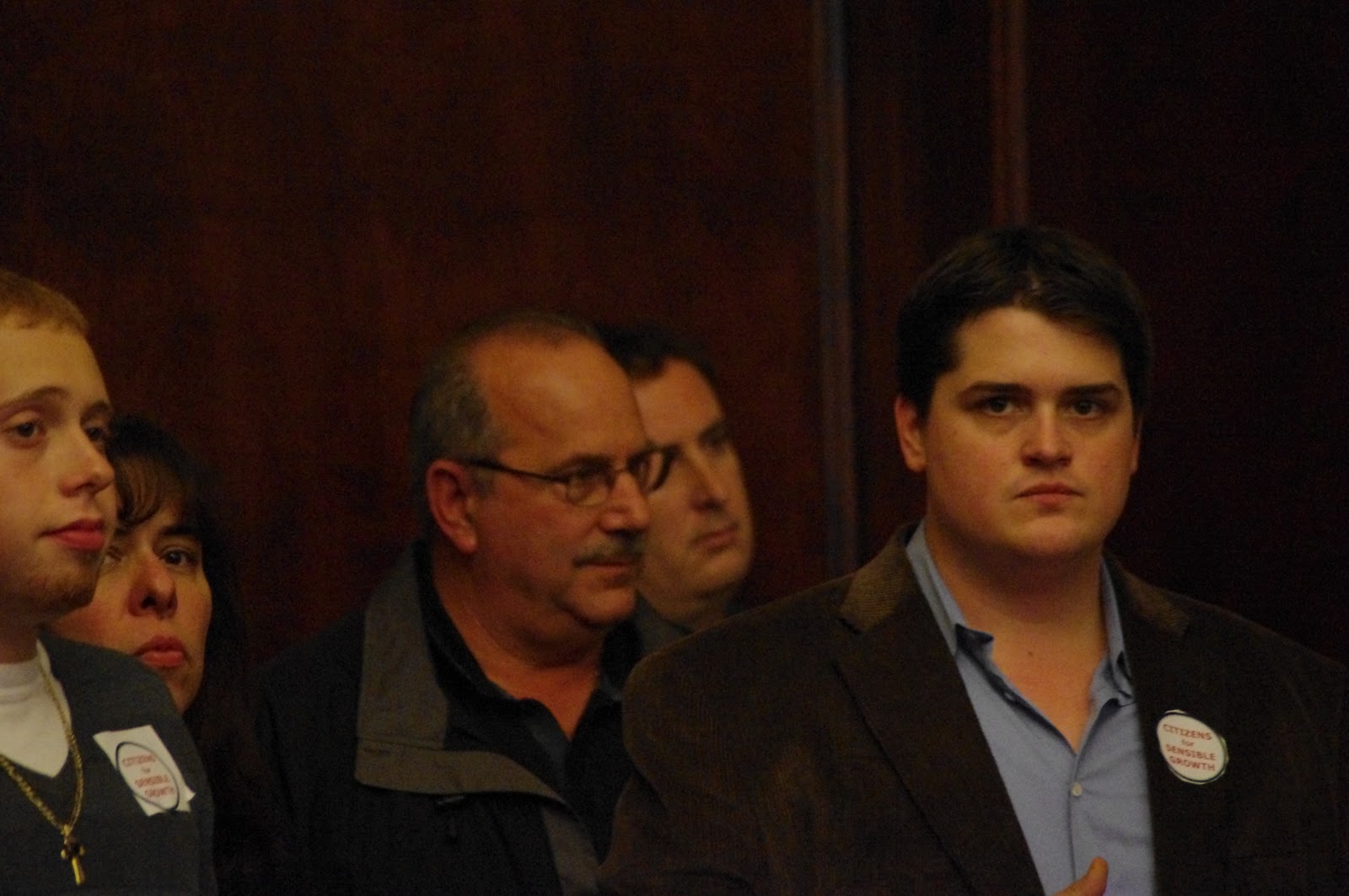 | Frank Raia (c) found himself like others surrounded by a horde of shadowy developer zombies with the oddly named group, “Citizens for Sensible Growth.” How much do you wanna bet “they” are against the Western Edge development plan? They have something more profitable in mind no doubt. |