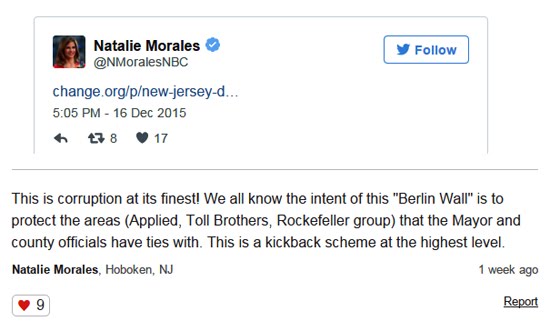 | Natalie Morales, a Hoboken resident makes wild corruption allegations against Mayor Zimmer being aligned with big mega developers. Well guess who stepped in it for Christmas. |